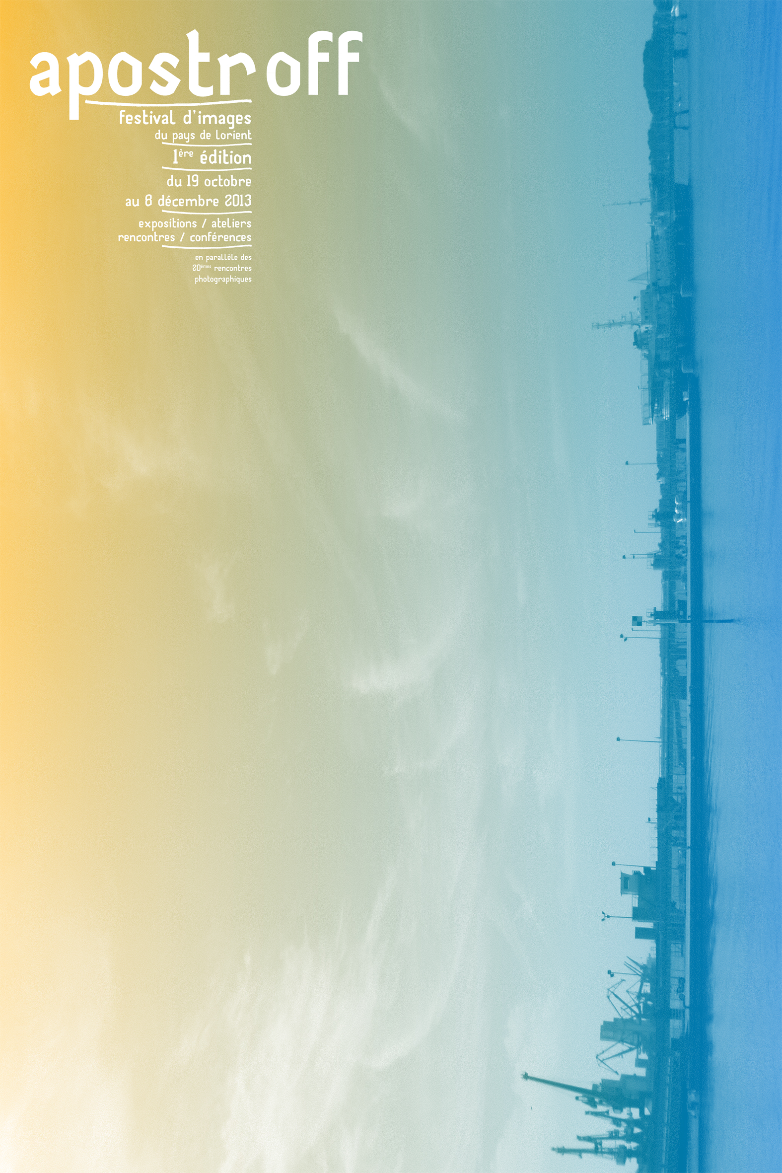 La première édition du festival d'images Apostroff naît de plusieurs désirs ; à la fois de partager une passion commune et d'ouvrir des chemins de traverse vers un public plus large directement dans les lieux de vie. 2013 - date clé pour les 20e Rencontres Photographiques du pays de Lorient - est l'occasion pour le off de prendre de l'envergure. Apostroff mène une réflexion sur l'image (photographique, reproduite, dessinée...) et plus généralement ses formes d'apparition et de création en favorisant le croisement entre les publics. Le festival d'images Apostroff propose un parcours d'expositions, des soirées thématiques et le projet d'ateliers que sont "Les Chroniques du Levant".