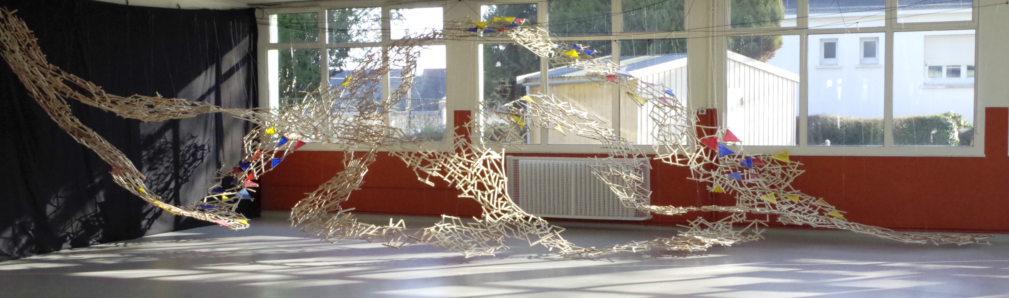 Dans le cadre du dispositif "Des artistes à l'école", l'association Multi-Prises est invitée au sein de l'école maternelle de Lanveur à Lorient. Quatre artistes (Simon AUGADE, Nicolas DESVERRONNIERES, Arnaud GOUALOU et Sylvain LE CORRE) ont mené ces ateliers pour construire une œuvre collective.