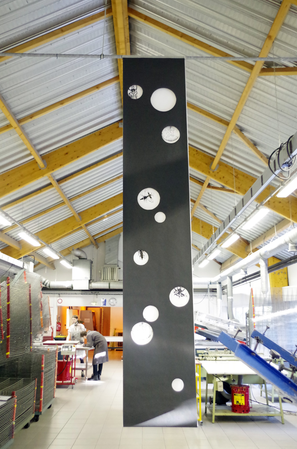 Les élèves de la classe de 1ère année CAP Sérigraphie Industrielle travaillent, avec six artistes de l’association Multi-Prises (Simon AUGADE, Nicolas DESVERRONNIERES, Nastasja DUTHOIS, Arnaud GOUALOU, Sylvain LE CORRE et Claire VERGNOLLE) autour du projet artistique « Sortie de cadre ». Celui-ci s’inscrit dans une volonté d’ouverture et de sensibilisation des lycéens aux pratiques artistiques liées à la technique de la sérigraphie.